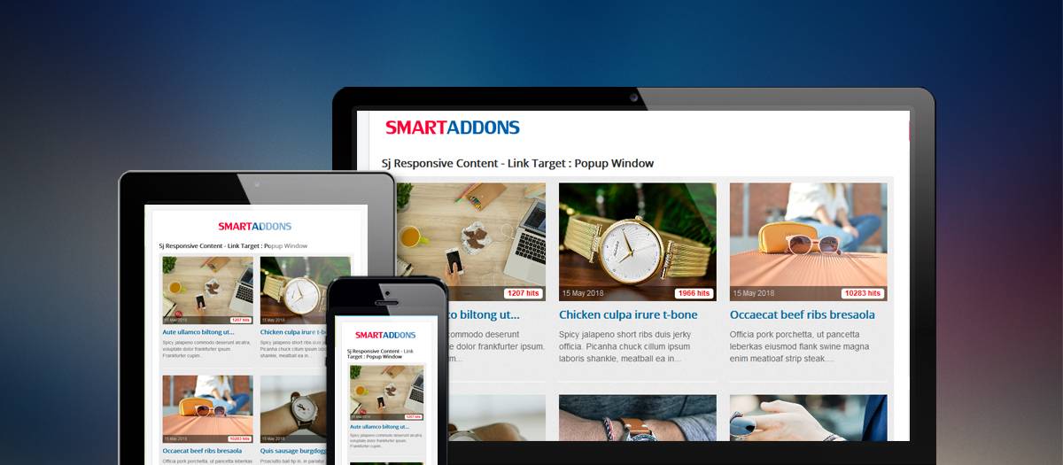 SJ Responsive Contentby SmartAddonsSj Responsive Content - made for Content component shows all articles as a Pinterest page (infinitive scrolling). With a responsive layout, it ...Articles Display, News Display